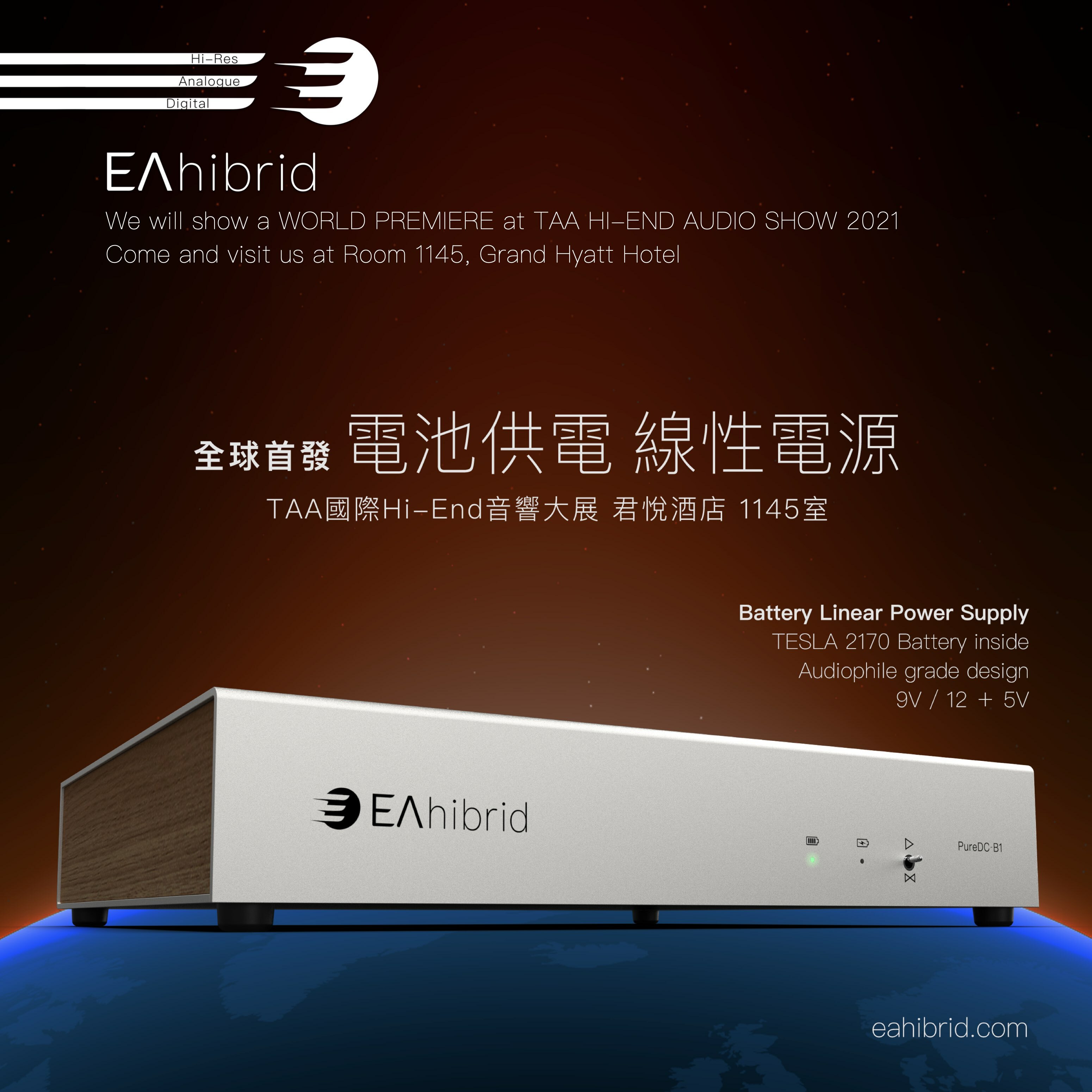 2021年11月4~7日,歷經1年多的研發,以及2021年10月份經歷舉辦試聽、市調的珍貴反饋與建議,雖然我們已經將器材內部線路與聲音調整到位,但外觀及小細節的重製與修改,使我們無法如期在音響展首發量產機,因此EAhibrid在只有樣品機的前提之下,仍鼓起勇氣希望讓更多人看到、聽到我們的產品,所以在台北國際音響大展 全球首度發表了!