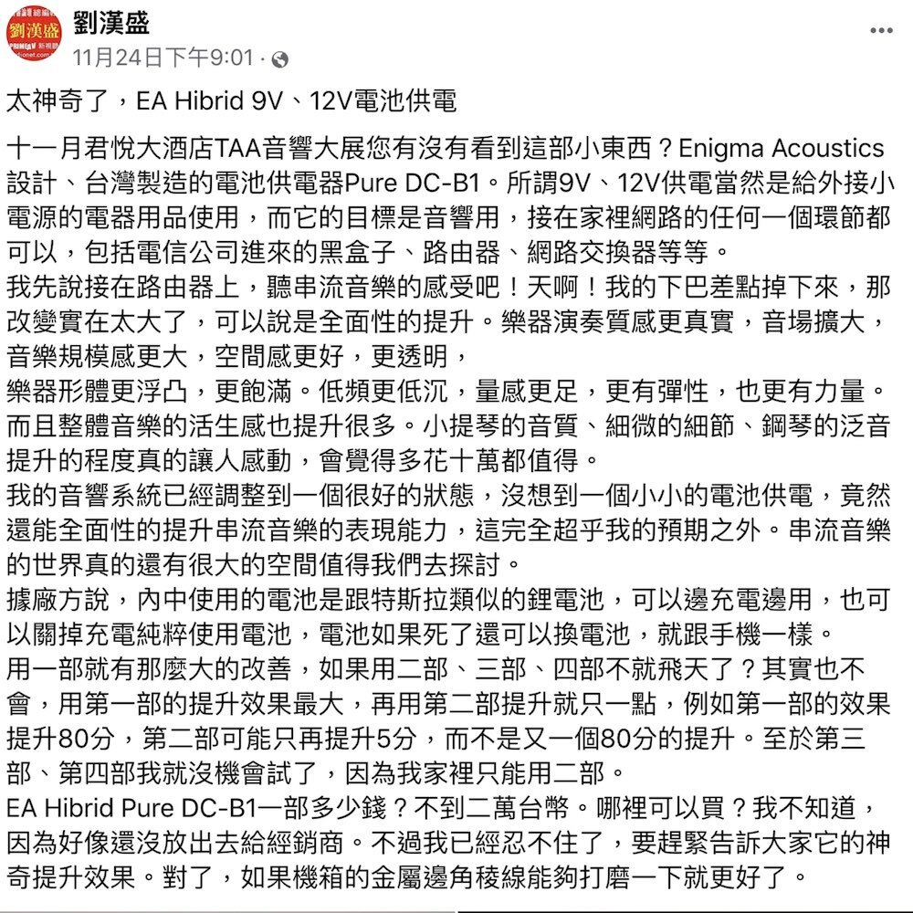 PureDC-B1是極少數徹底解決電池供電難題的外接線性電源,它所提供的電源純淨度與穩定度,也是一般線性供電所難以迄及的。PureDC-B1所帶來的音質改變,不只是讓重播能量更充沛、細節更豐富、音場更開闊而已。它還能讓音質更豐潤、更自然、更立體、更真實。最重要的是,它能讓音樂重播更有感染力,讓聽者更能沉浸在音樂所營造的氛圍之中... 謝謝🙏『音響論壇 陶忠豪主編、洪瑞峰編輯、蘇雍倫編輯』,在這次超級完整的集體評測中,給了『EAhibrid PureDC-b1電池供電 線性電源 』高度的肯定,也看見創辦人與研發團隊近兩年的用心與努力,想了解PureDC-b1是怎麼讓串流音樂在Hi-End級別的器材也能重現音樂帶來的感動,推薦大家一定要看看這一篇!